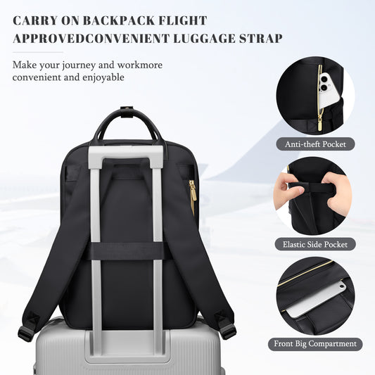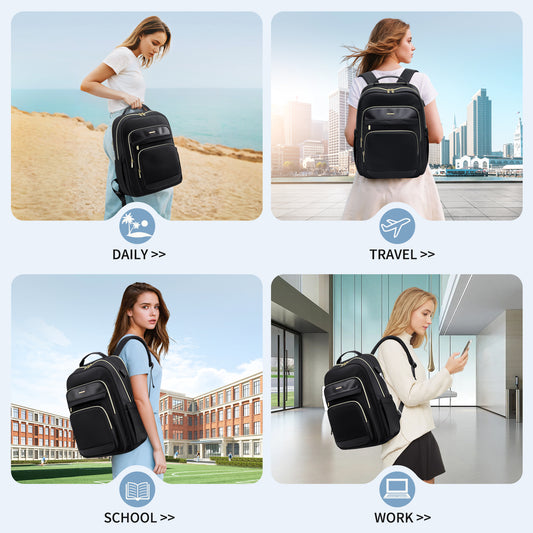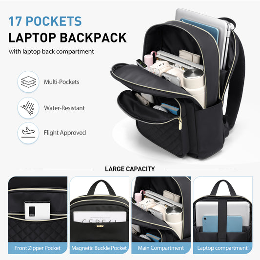 VNINE Laptop Backpack for Women Work: 15.6 Inch Computer Backpacks Purse Large Capacity Carry on Bookbag Waterproof Lightweight Daypack Bag for College Nurse Teacher Travel Black